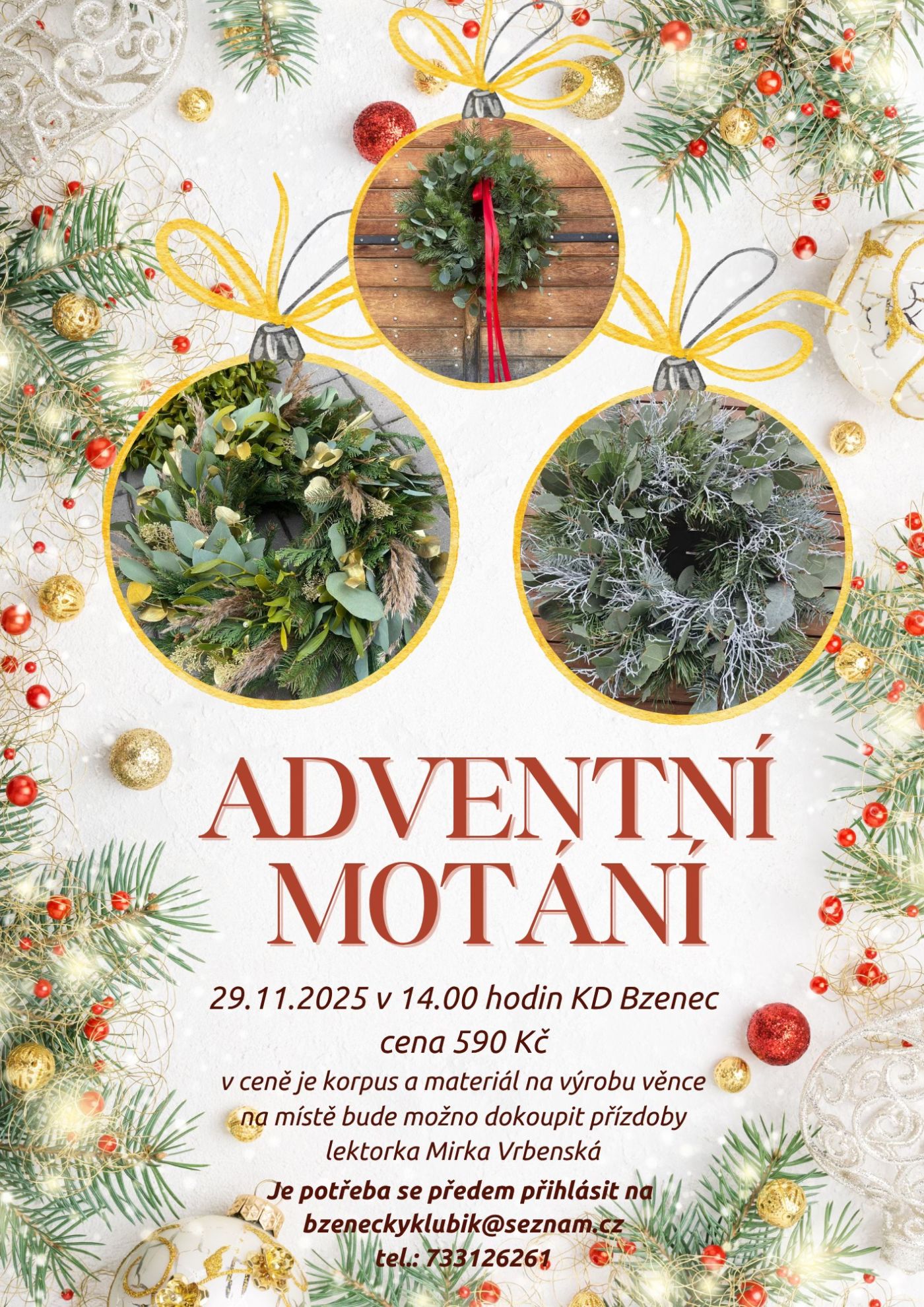 V ceně je korpus a materiál na výrobu věnce. Na místě bude možno dokoupit přízdoby.