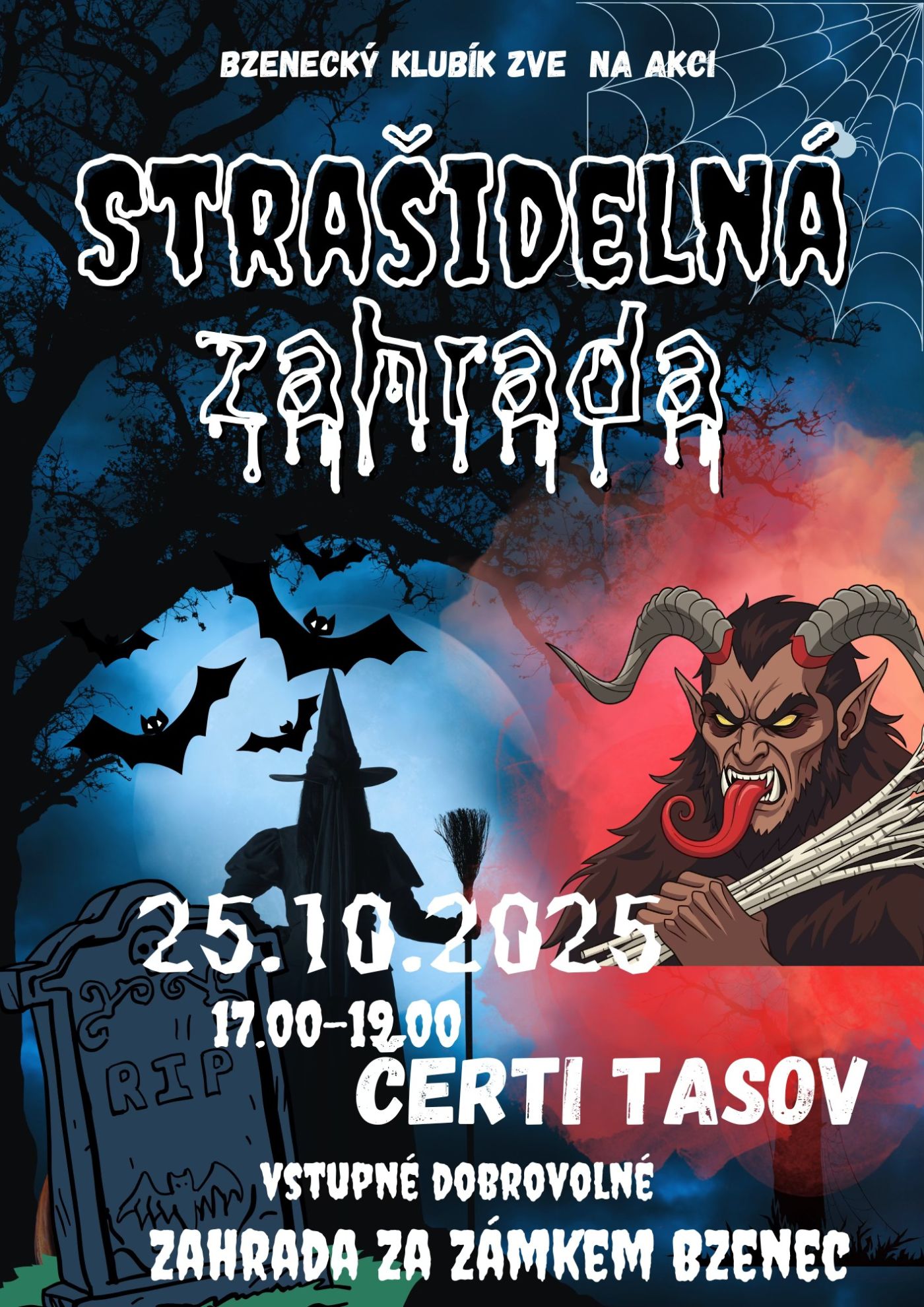 Strašidelná zahrada Pro děti 25.10.2025, 17:00 ― 19:00 v parku za bzeneckým zámkempořádáBzenecký klubík Přidat do kalendáře