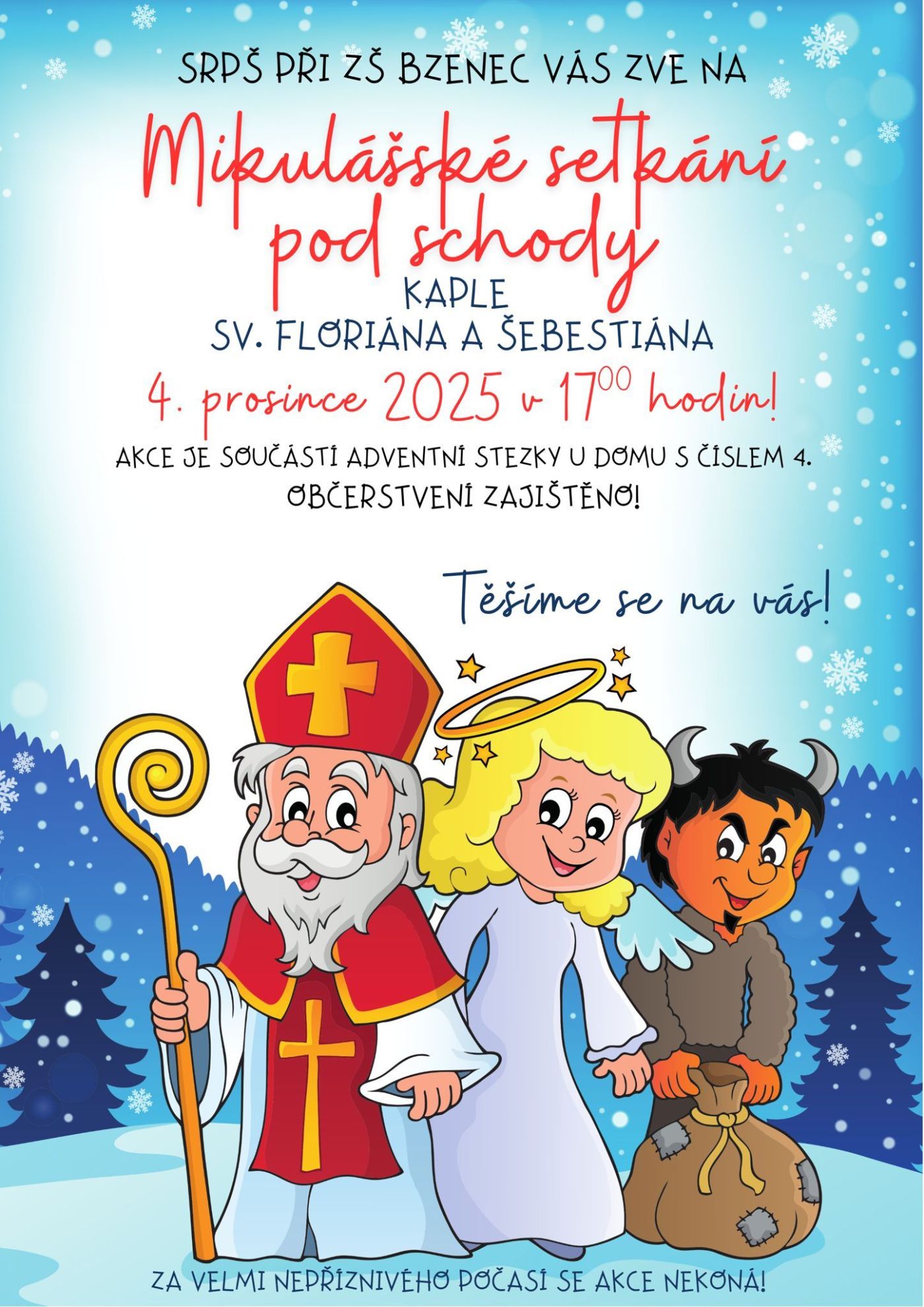 Mikulášské setkání pod schody kaple sv. Floriána a Šebestiána