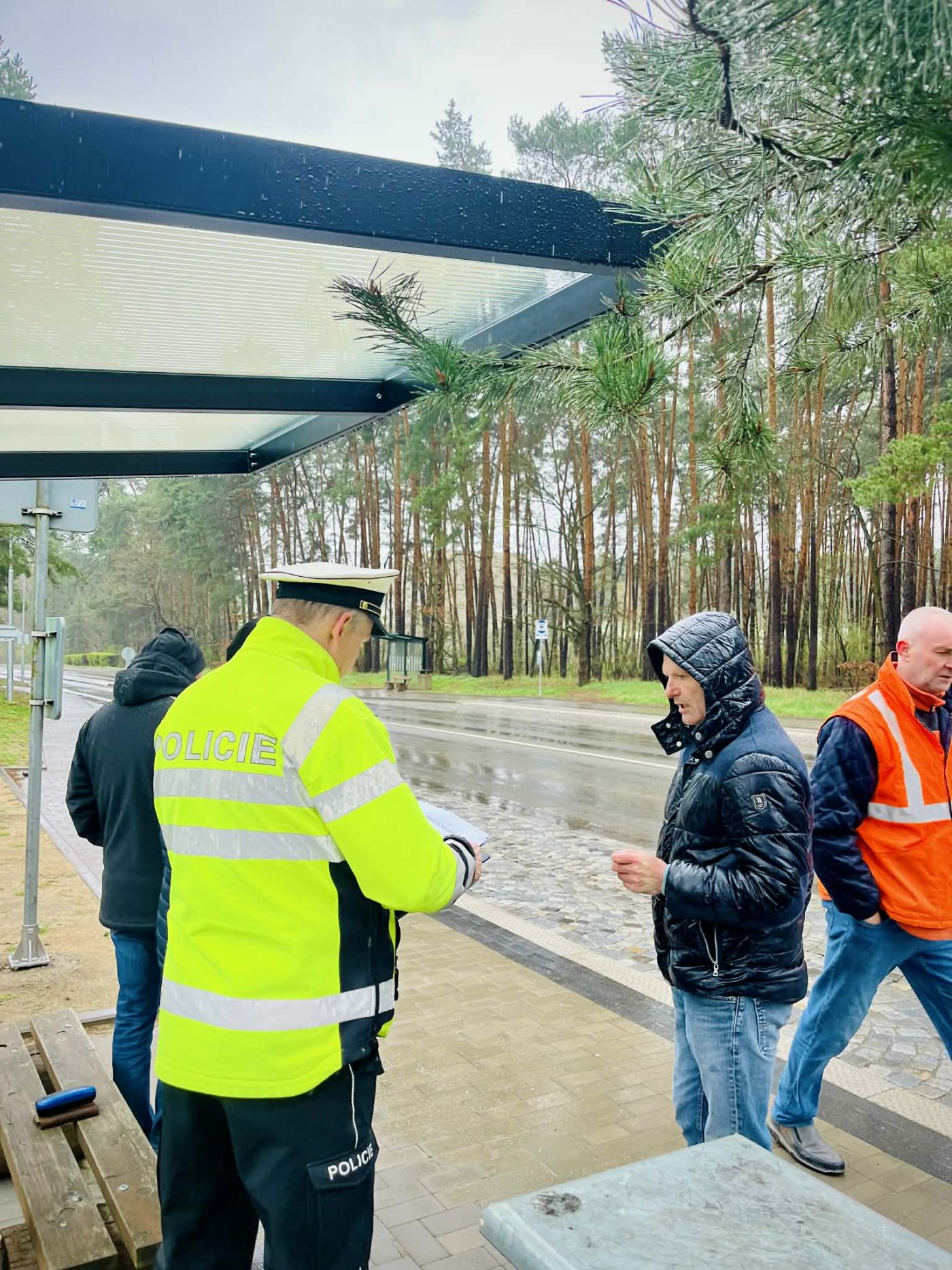 Za účasti zástupců Policie ČR, Správy a údržby silnic JMK a Městského úřadu Kyjov proběhla kontrolní prohlídka stavby autobusových zastávek s přechodem a chodníky na Přívoze.