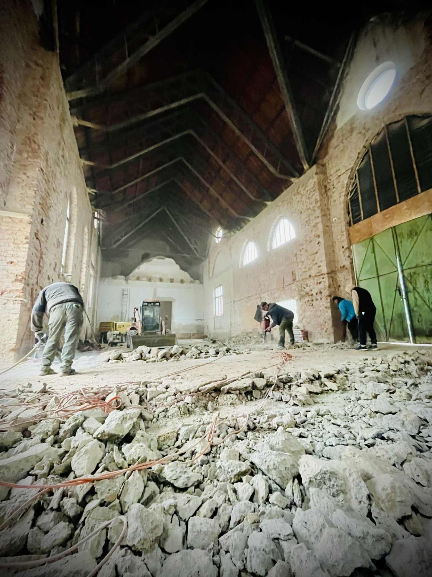 V lisovně se stále bourá a odstraňují se staré vrstvy. Odstraňování betonu v podlaze musí s ohledem na sklepy probíhat pouze s bouracími kladivy bez větší mechanizace.