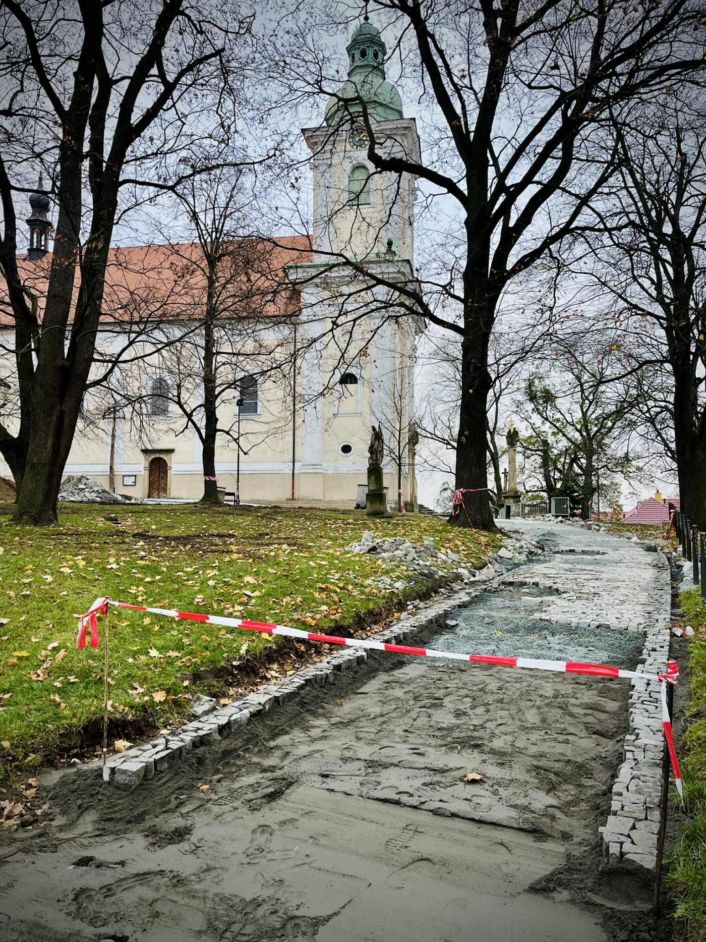 - Oprava návrší kostela pokračuje příjezdovou cestou