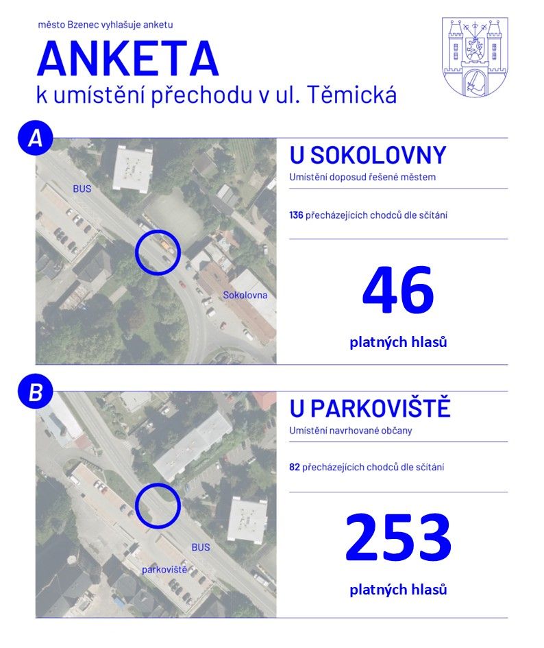 253 platných hlasů bylo odevzdáno pro variantu B u parkoviště, 46 pak pro variantu A u Sokolovny. Výsledek ankety je podkladem pro rozhodnutí zastupitelstva, které danou záležitost projedná v rámci rozpočtu pro rok 2026 na svém prosincovém zasedání.