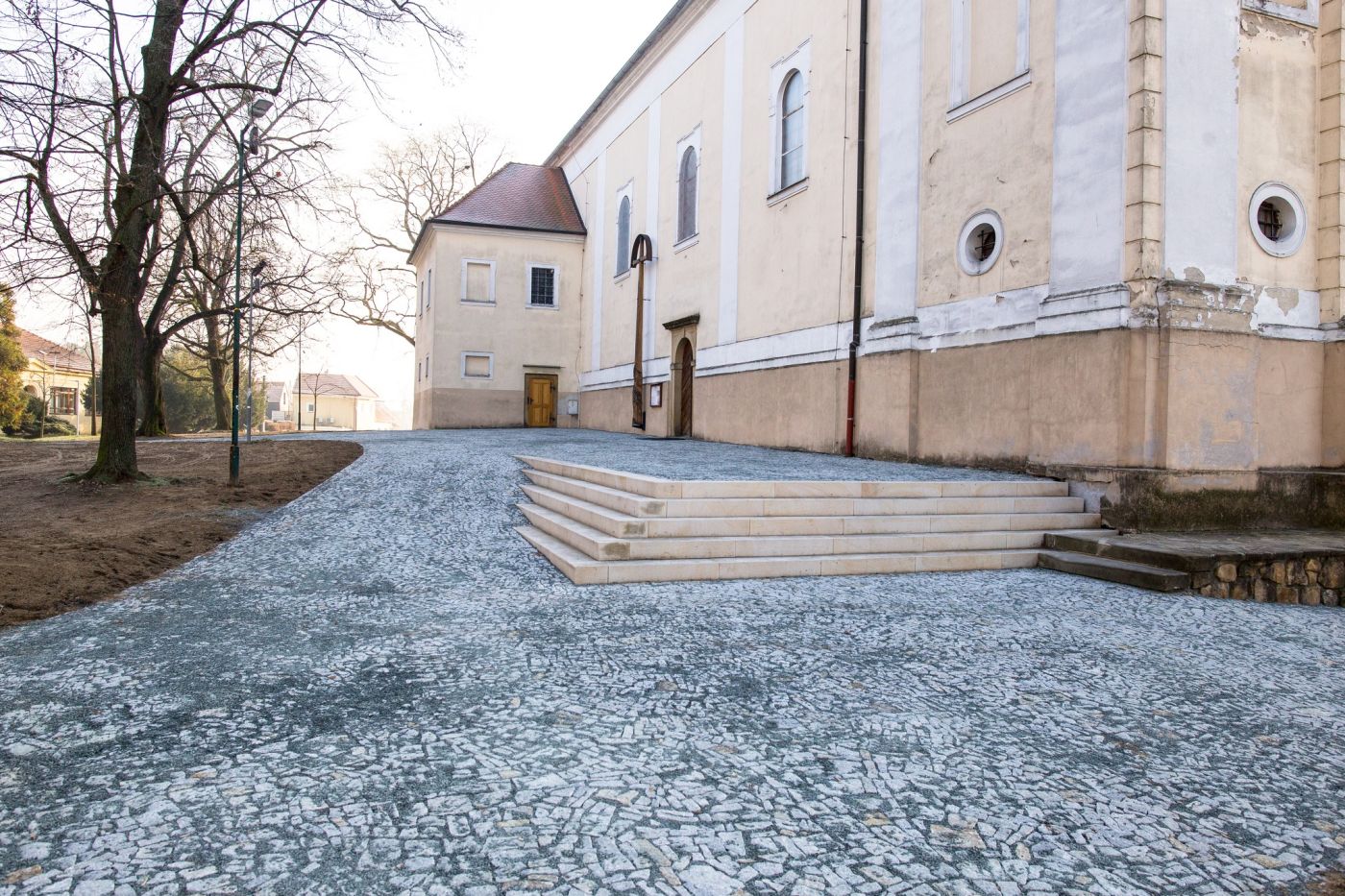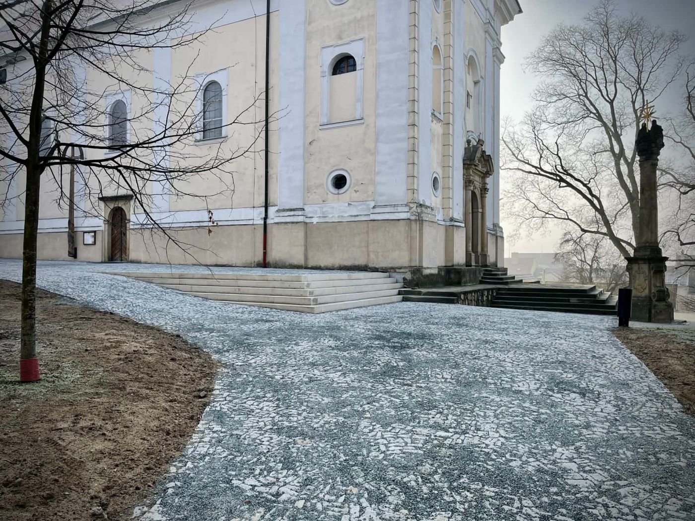 Rekonstrukce povrchů a schodiště v rámci prostranství u kostela je u konce. Konečné náklady stavby činí cca 2,3 mil. Kč vč. DPH, což je v souladu s předpokladem. Na stavbě se podíleli i pracovníci služeb města, kterým tímto děkujeme. Po nějaký čas ještě zůstane patrný posyp štěrkodrtě, dokud ta nezaplní všechny spáry.